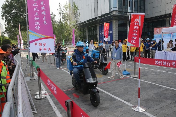 据介绍,本次竞赛由陕西省财贸金融轻工工会、西安市总工会、碑林区总工会联合主办,文艺路街道总工会、陕西饿了么等承办,竞赛分为理论考试和实操环节,吸引了上百名选手参加,最终30名选手进入决赛,决赛包括“S弯绕行”“绕杆骑行”“情景模拟”等5个环节,全面考察骑手的职业能力素养。