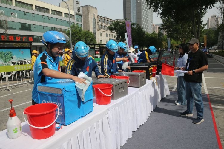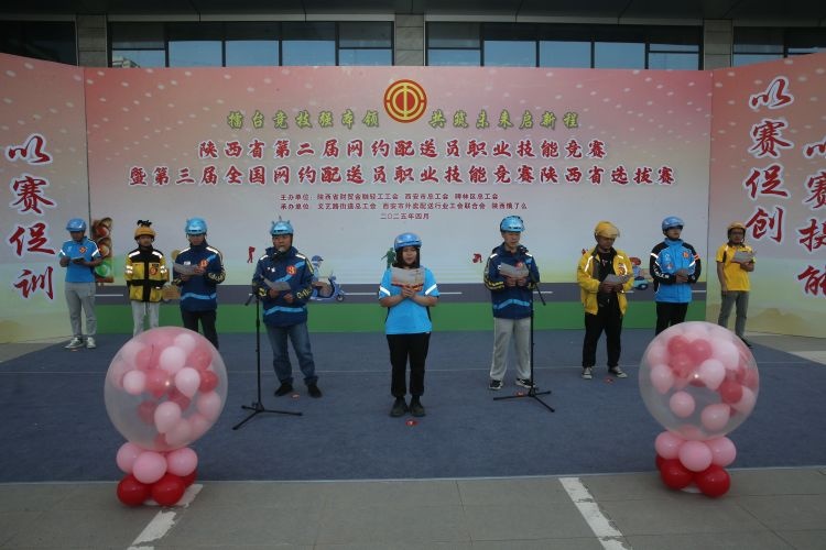 近日,以“擂台竞技强本领共筑未来启新程”为主题的陕西省第二届网约配送员职业技能竞赛在碑林区建大意诚科创中心广场举办。来自饿了么、美团、盒马平台的30名网约配送员参加最终决赛。陕西省总工会副主席刘皓宣布决赛开赛。