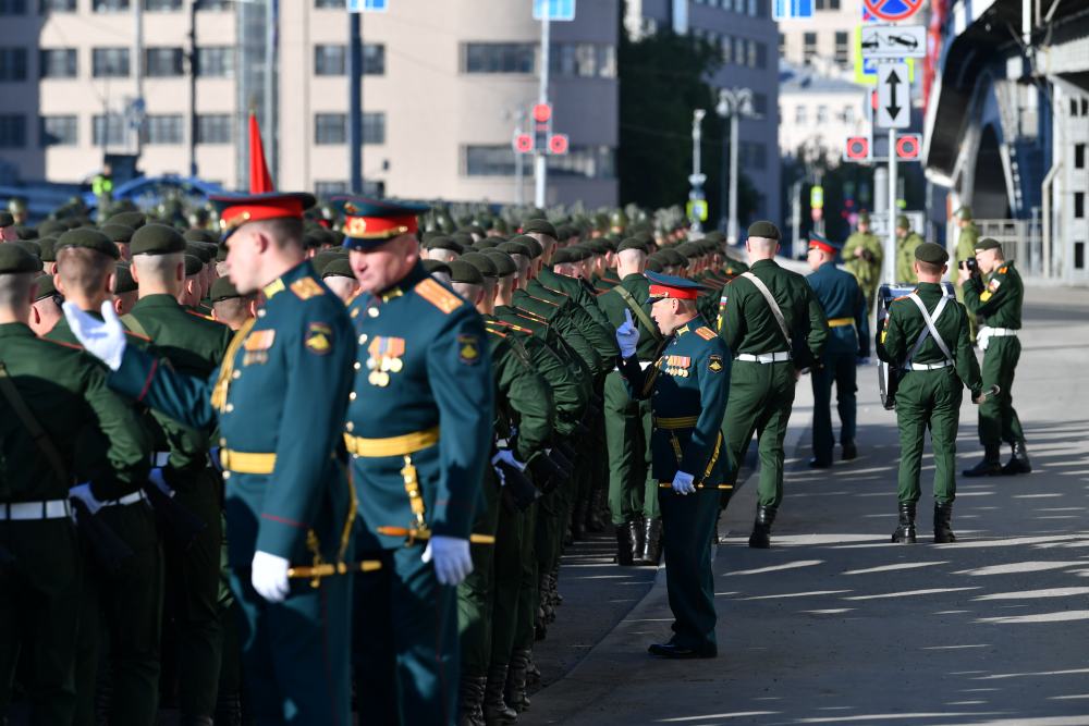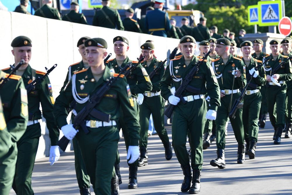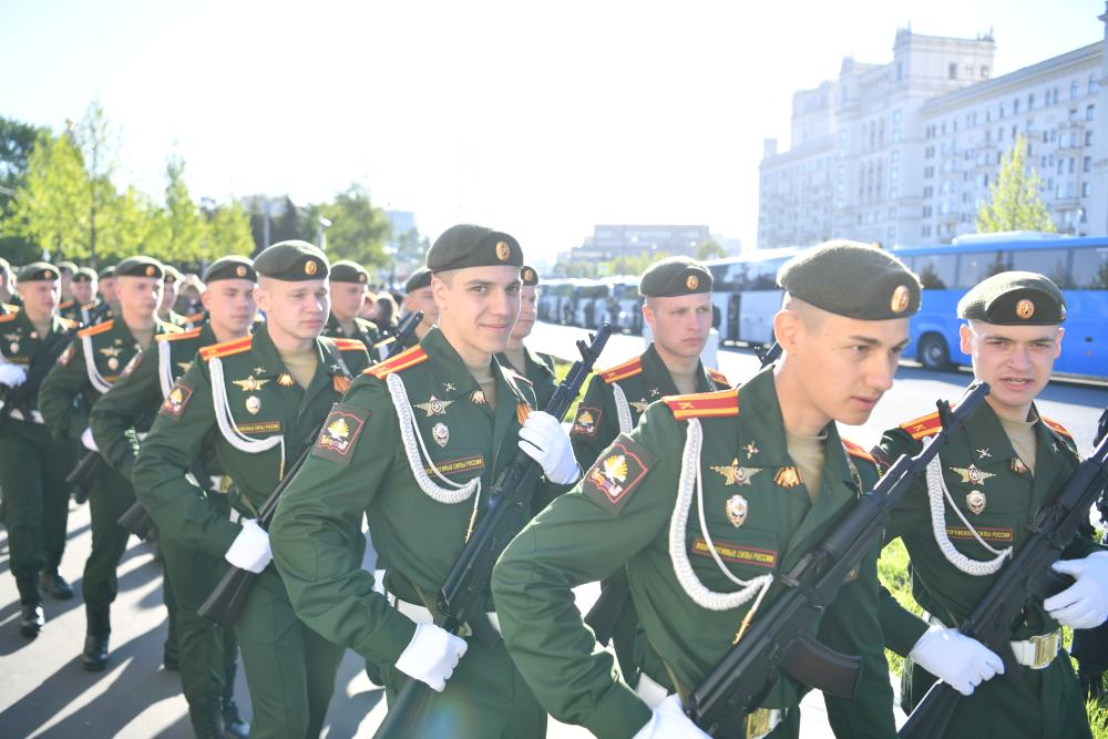 ↓5月9日,在俄罗斯首都莫斯科,士兵集结准备参加纪念苏联伟大卫国战争胜利80周年阅兵式。