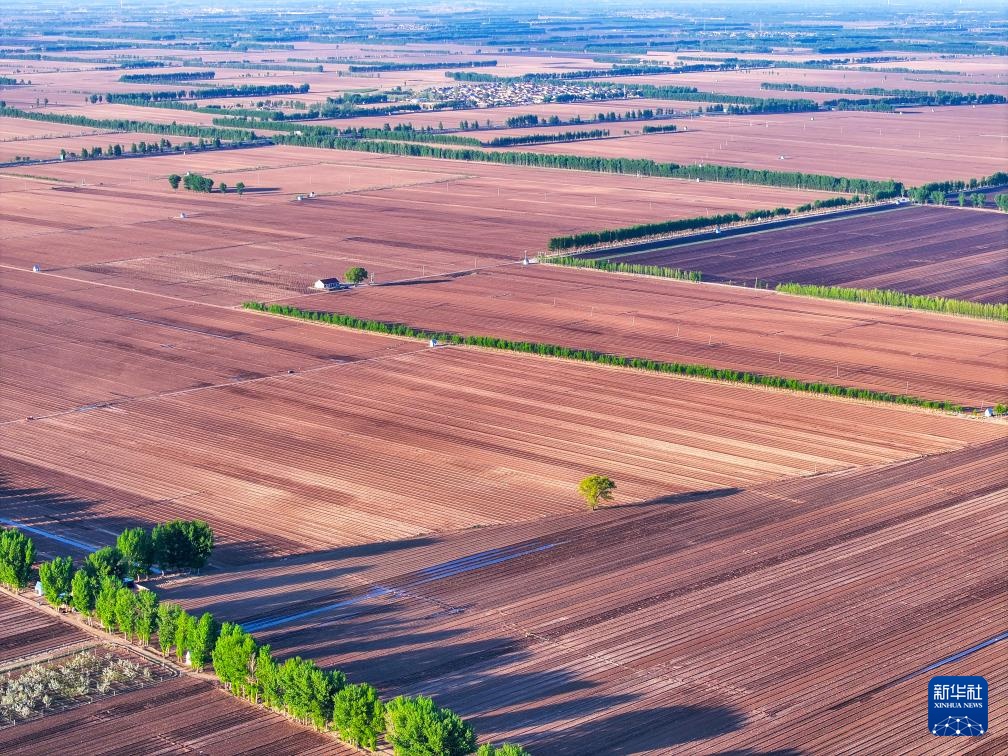 这是在内蒙古通辽市科尔沁区钱家店镇坤都花村已经完成播种的良田(5月10日摄,无人机照片)。新华社记者 连振 摄