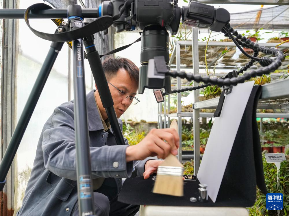 在四川省汶川县映秀镇一碗水村,刘明在植物园的保育棚为拍摄植物精细解剖照做准备(5月9日摄)。新华社记者 王曦 摄