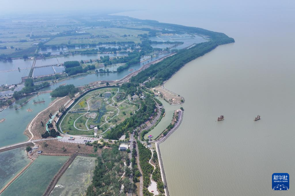 5月11日拍摄的大运河国家文化公园淮安洪泽湖古堰段景色(无人机照片)。新华社记者 季春鹏 摄