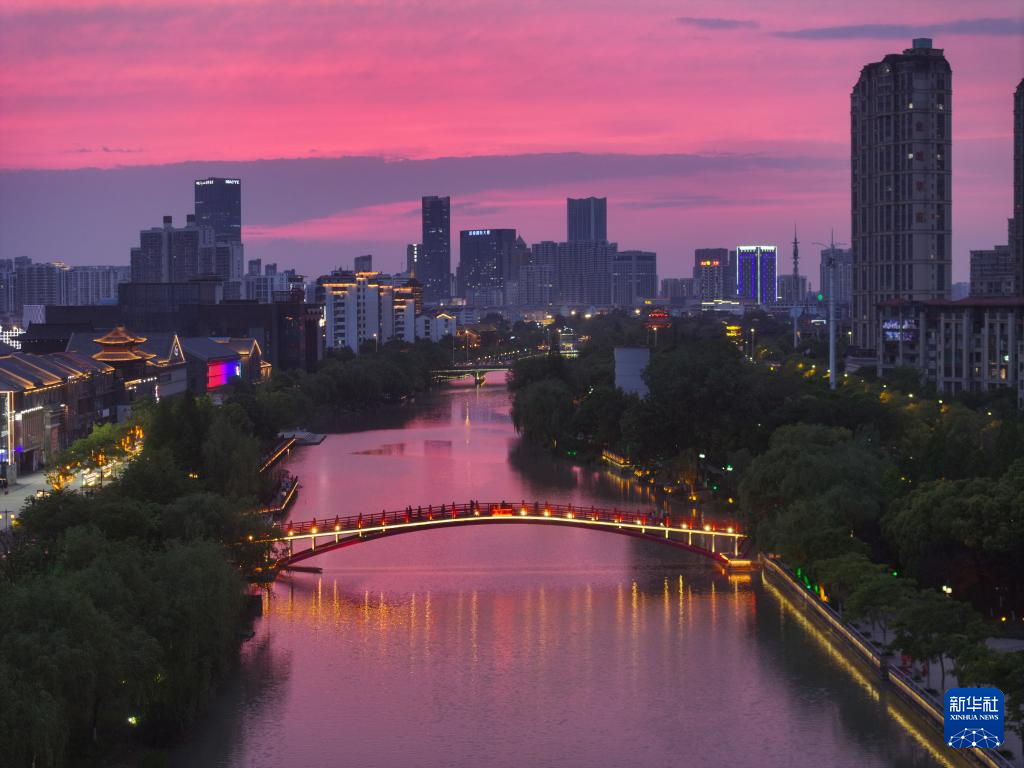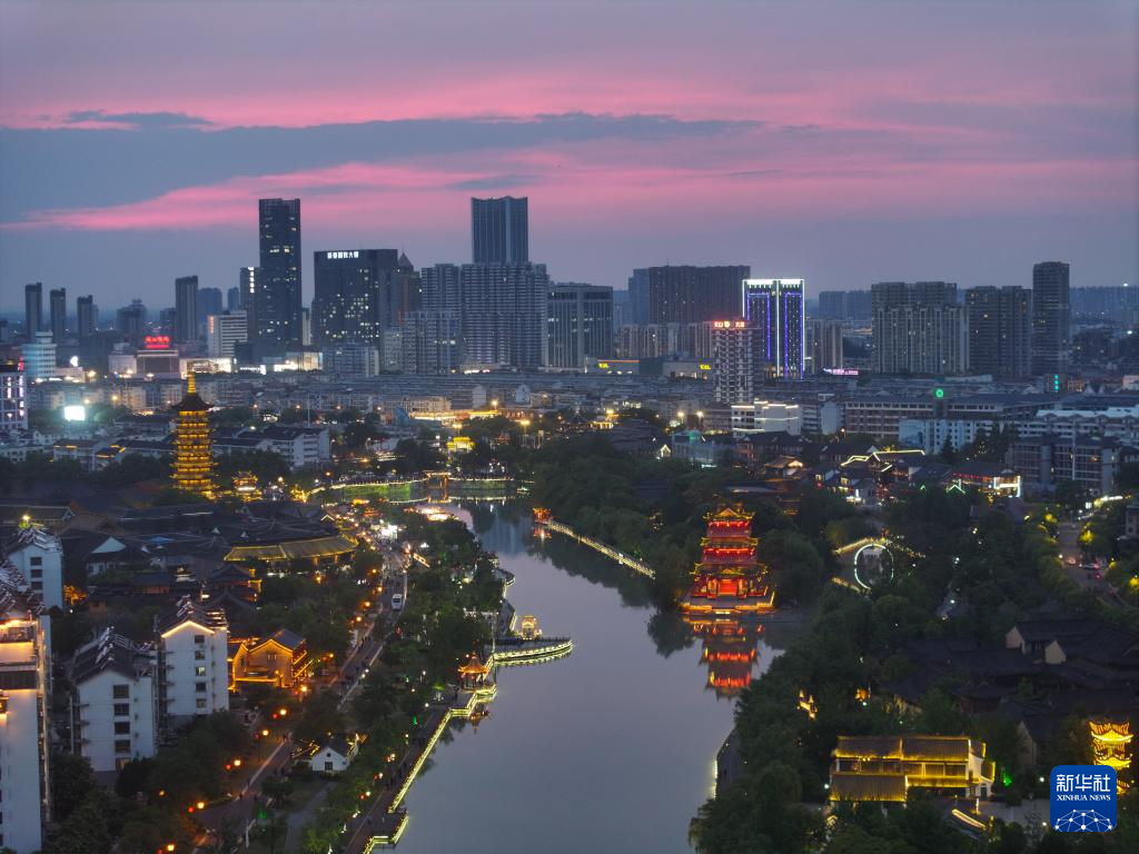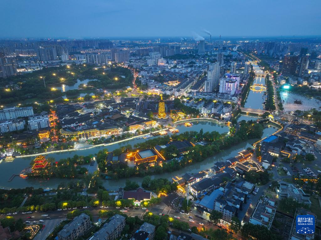 暮色中的淮安里运河文化长廊(5月10日摄,无人机照片)。新华社记者 季春鹏 摄