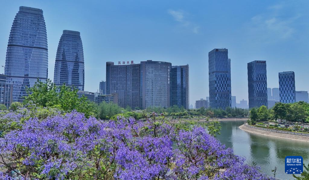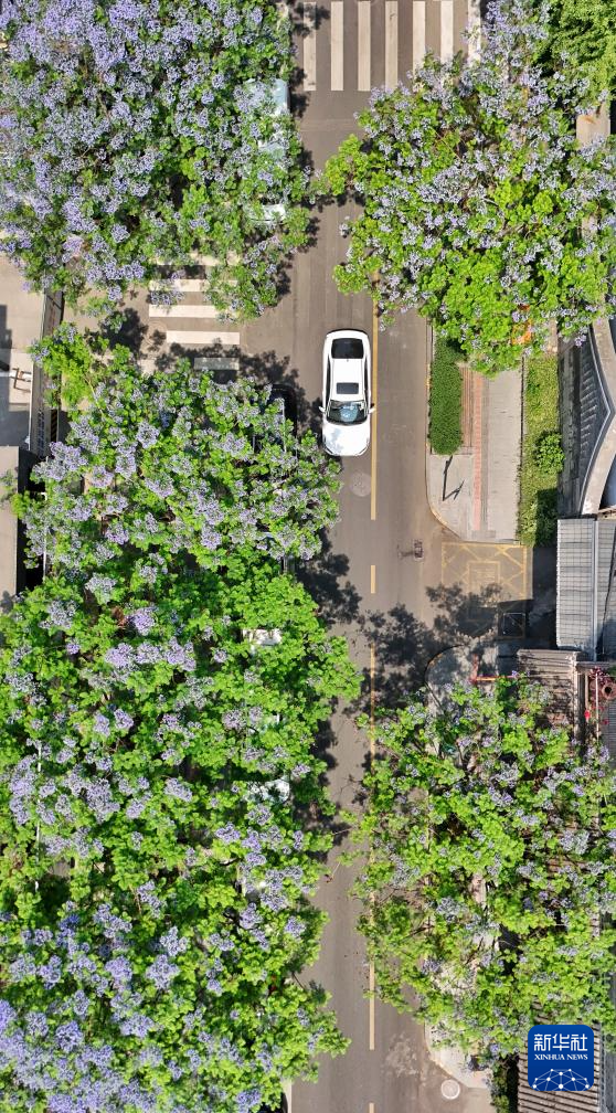 近日,随着气温逐渐升高,成都街头巷尾的蓝花楹迎来盛花期,为城市披上了一层梦幻的蓝紫色纱衣。