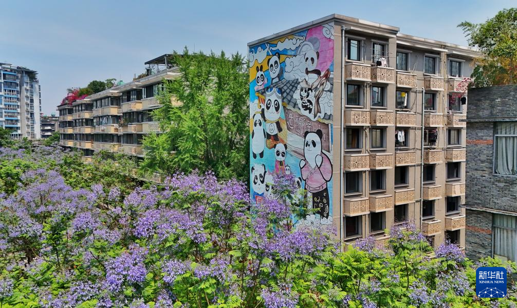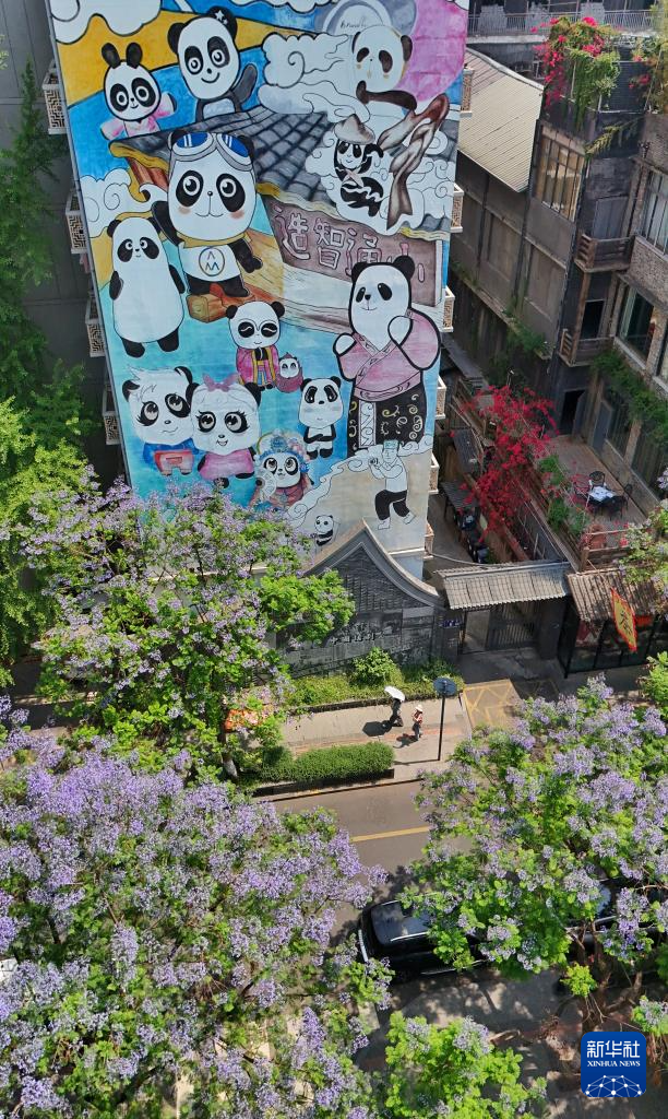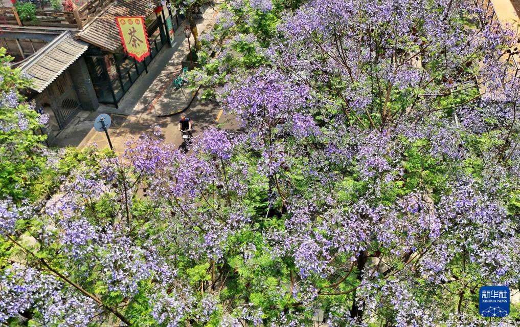 5月12日在成都市青羊区小通巷拍摄的蓝花楹(无人机照片)。新华社记者 刘坤 摄