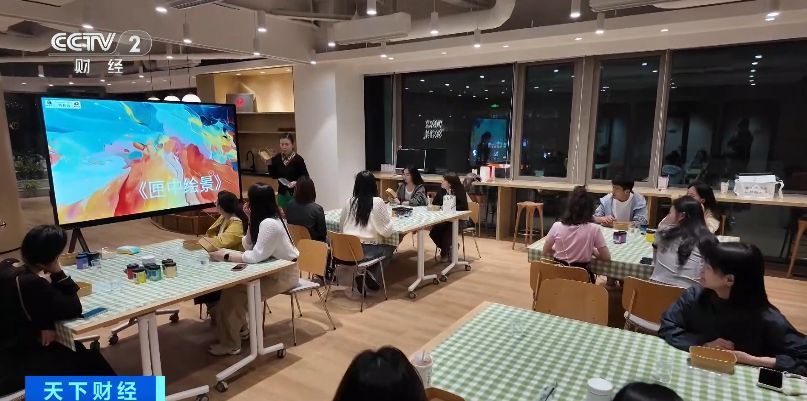 晚上7点,青年夜校灯火通明,走出办公楼的白领们,拿起画笔,在美育课上“充电”,放松心情。热闹的夜校,也给附近的青春小店带来了新商机。
