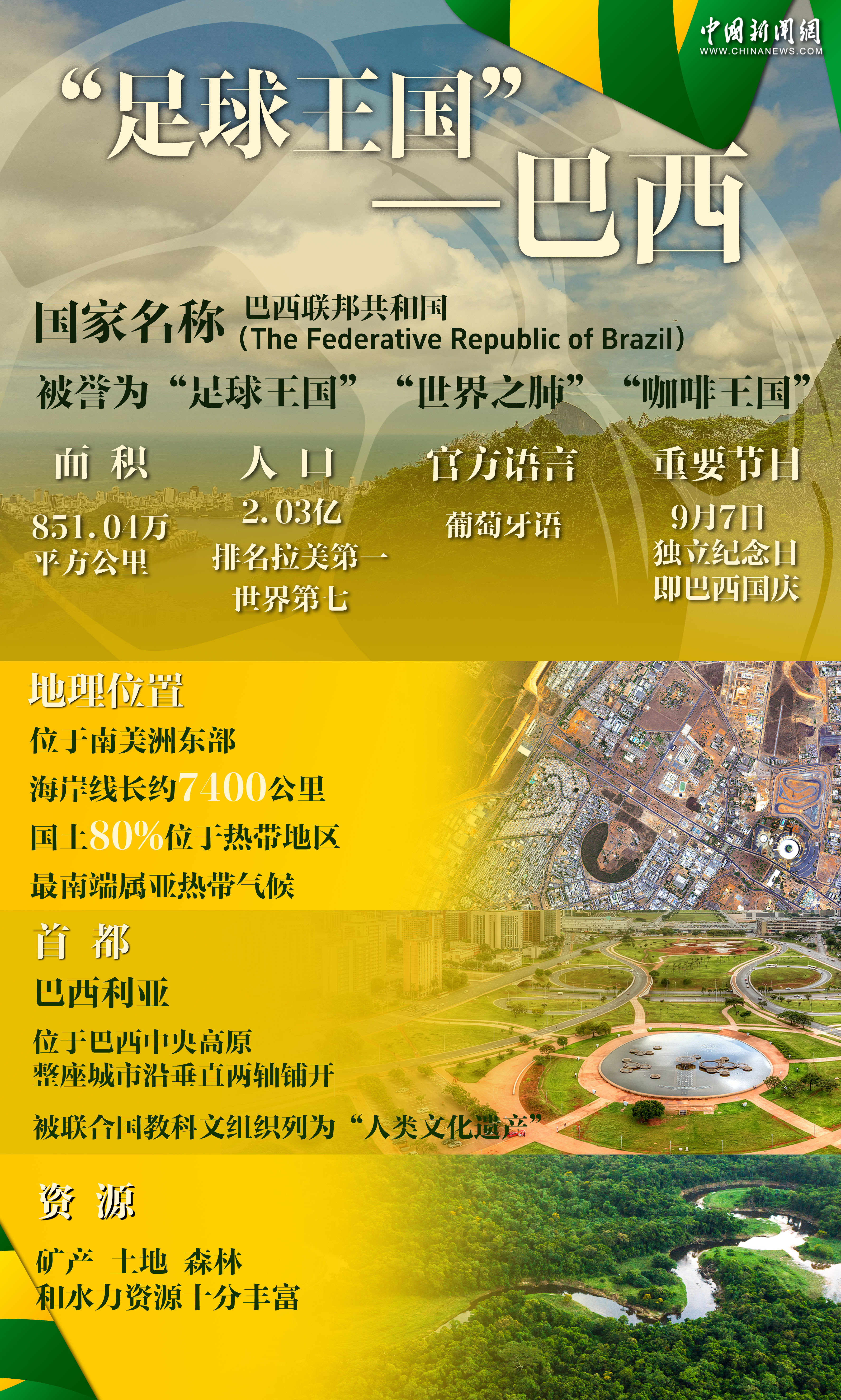 中新网5月13日电 桑巴舞步摇曳生姿,绿茵场呐喊点燃激情,咖啡香飘万里。多元文化在此交融,狂欢节彩带飞扬……巴西用最炽热的姿态,向世界绽放它永不枯竭的生命活力。