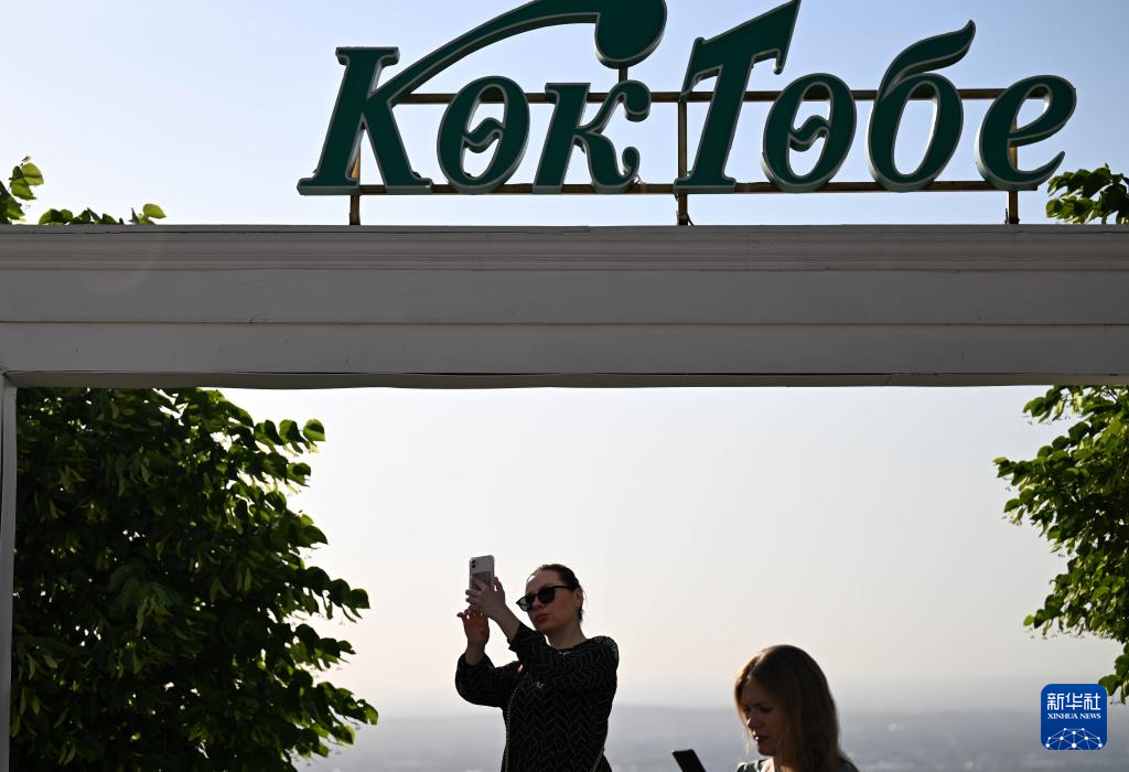 5月13日,人们在哈萨克斯坦阿拉木图的科克托别山游览。新华社记者 李任滋 摄