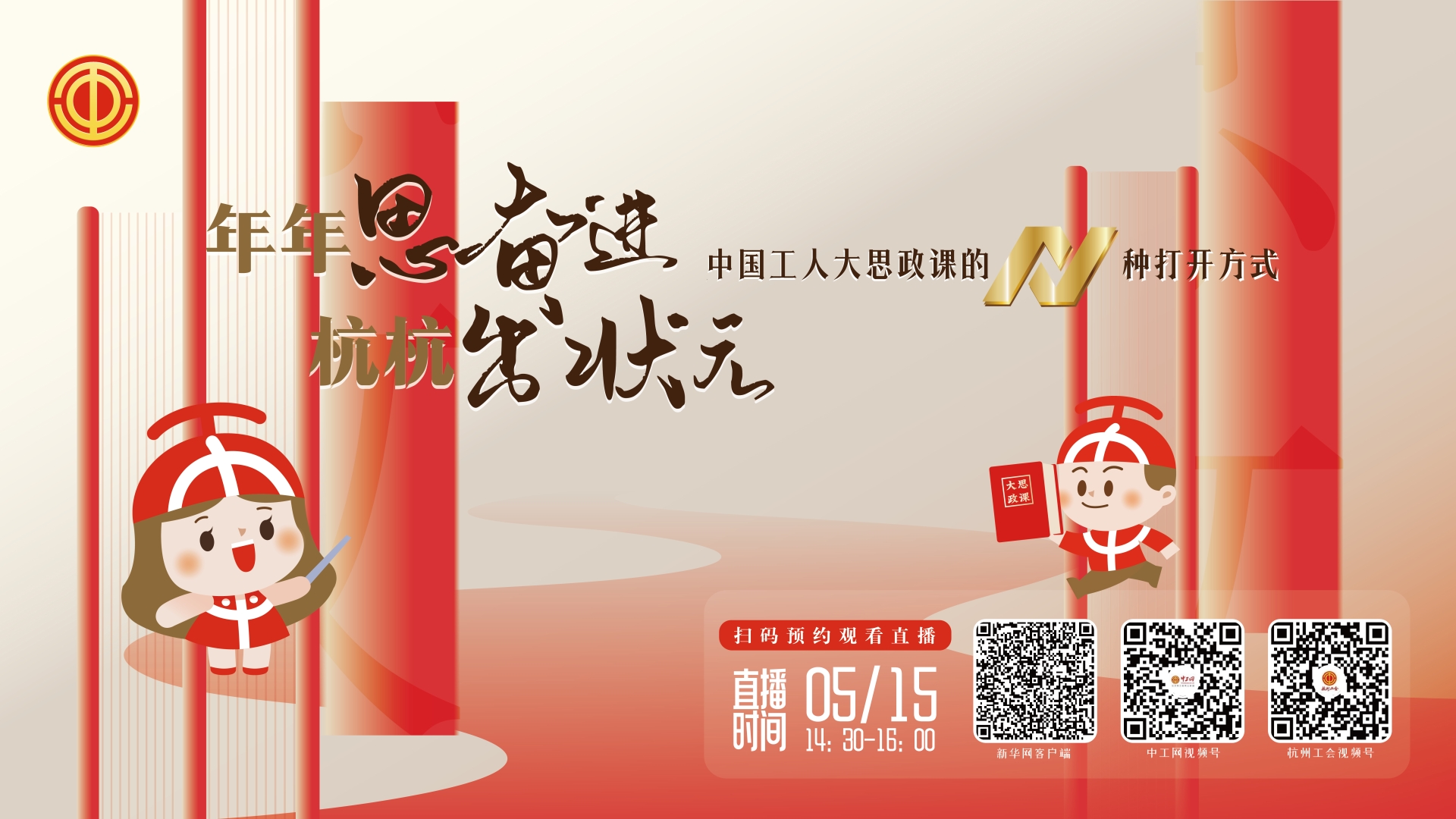 直播回顾|"年年思奋进 杭杭出状元"—中国工人大思政课的N种打开方式 在中华全国总工会成立100周年之际,杭州市总工会创新打造"中国工人大思政课"杭州模式。5月15日14:30,直播举办"中国工人大思政课"特色展示活动,中工网首页、微博、视频号同步播出。