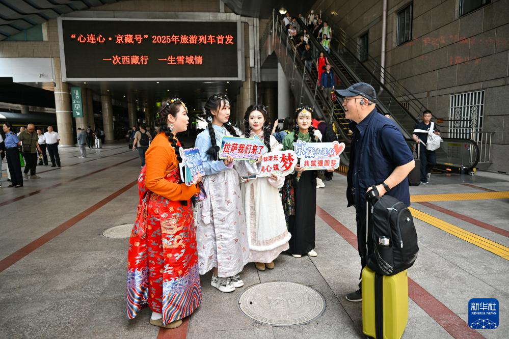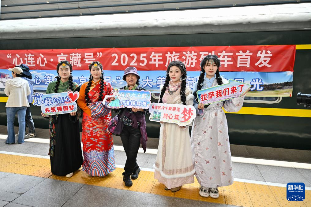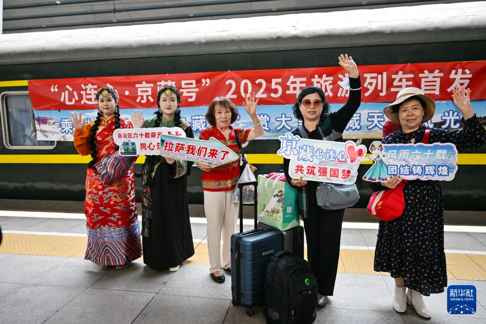 5月16日,“心连心·京藏号”2025年旅游列车从北京西站发车。新华社记者 孙瑞博 摄