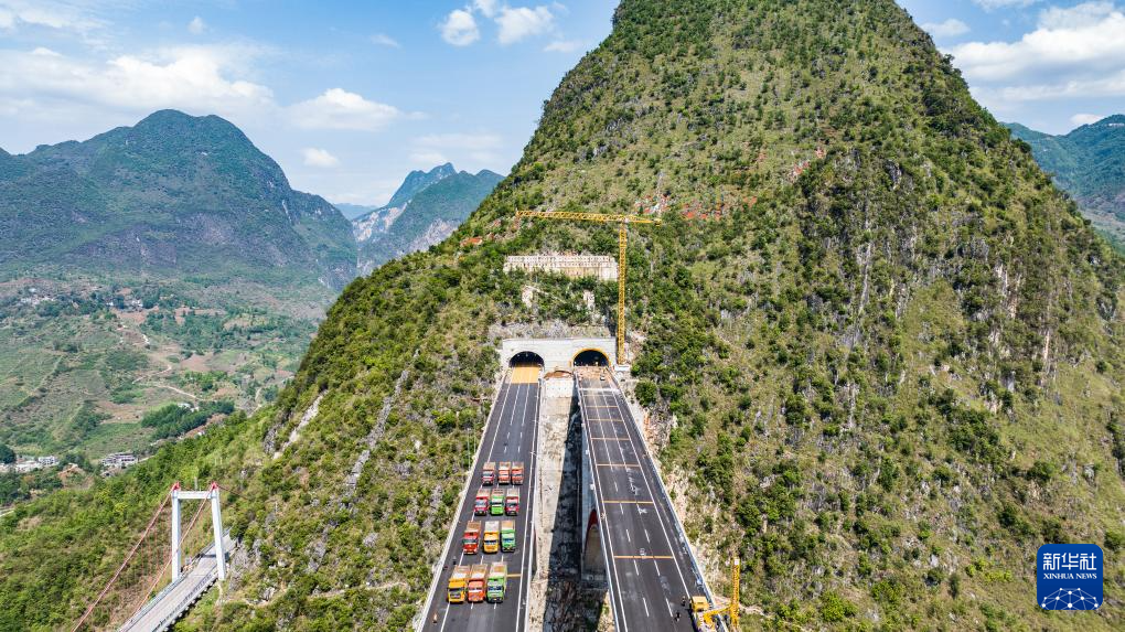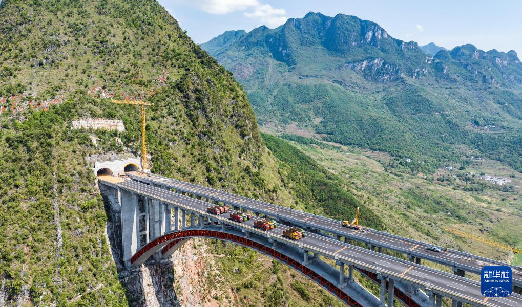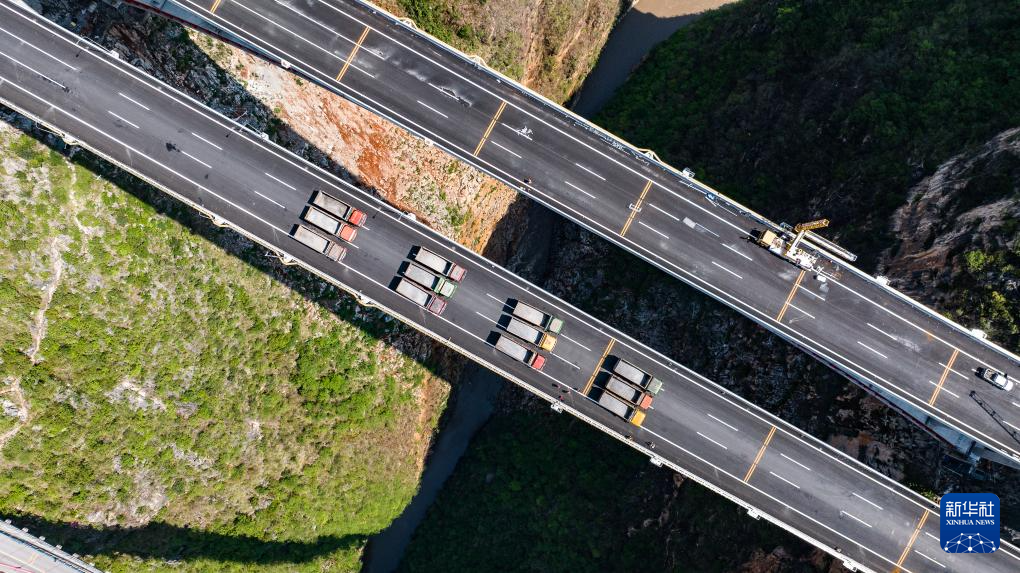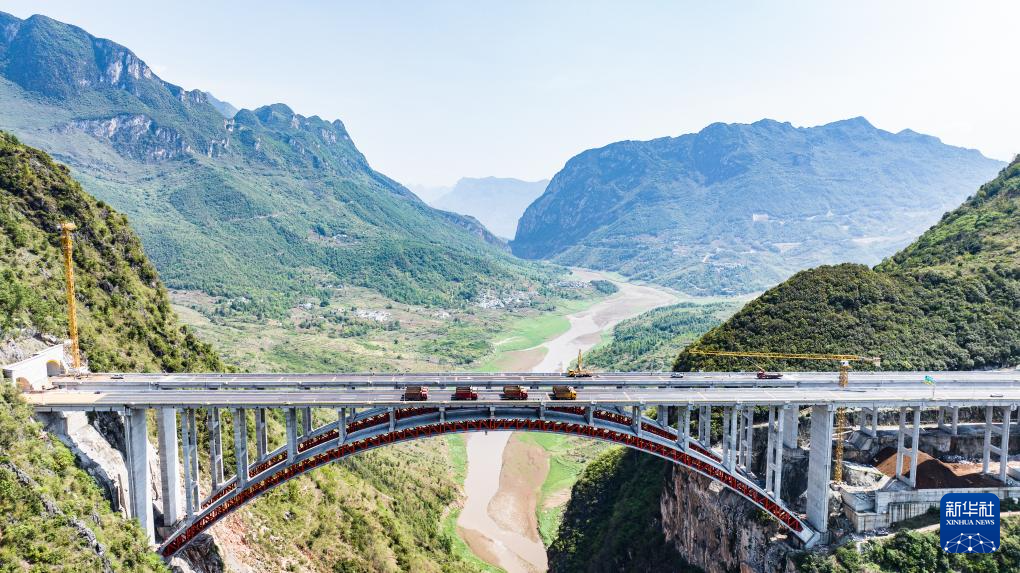 5月17日,乌蒙山大桥进行静态荷载试验(无人机照片)。新华社记者 陶亮 摄