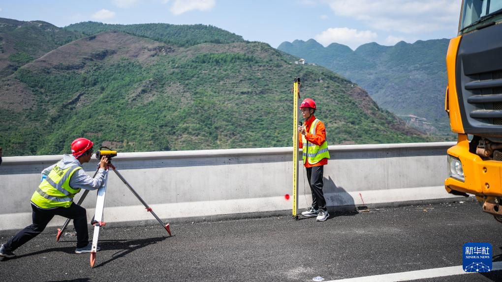 5月17日,工作人员在乌蒙山大桥采集检测数据。新华社记者 陶亮 摄