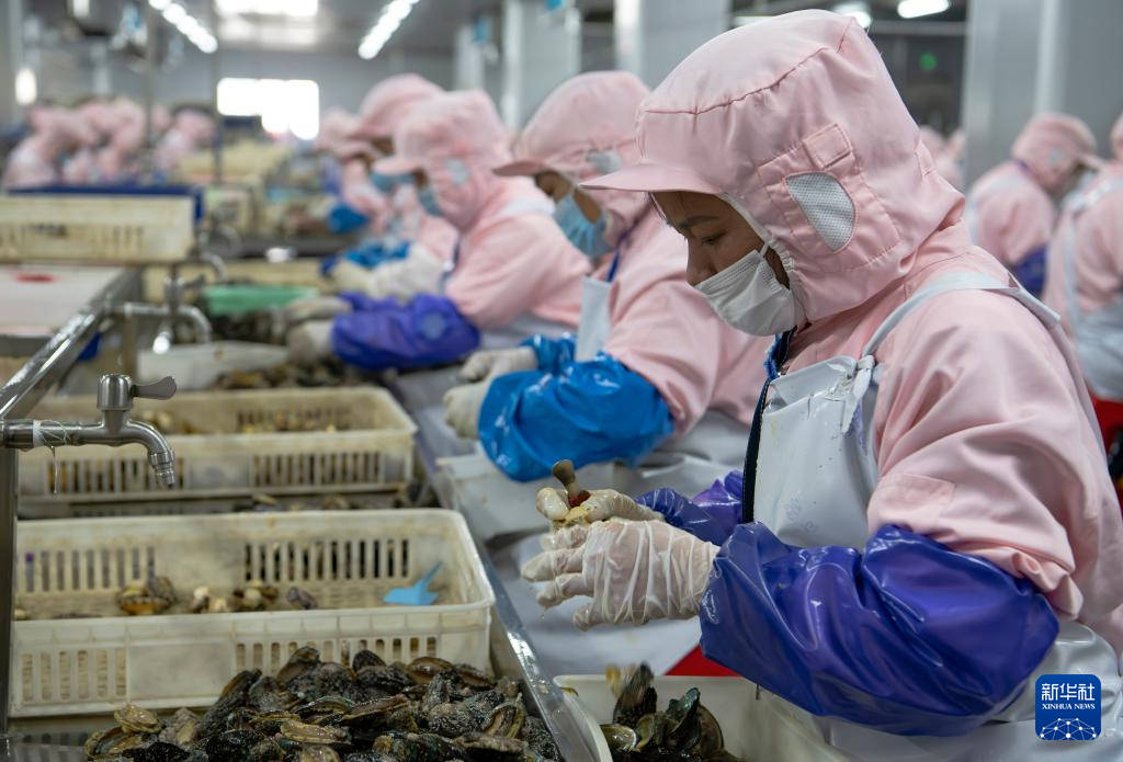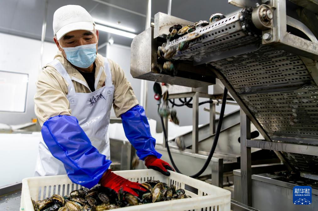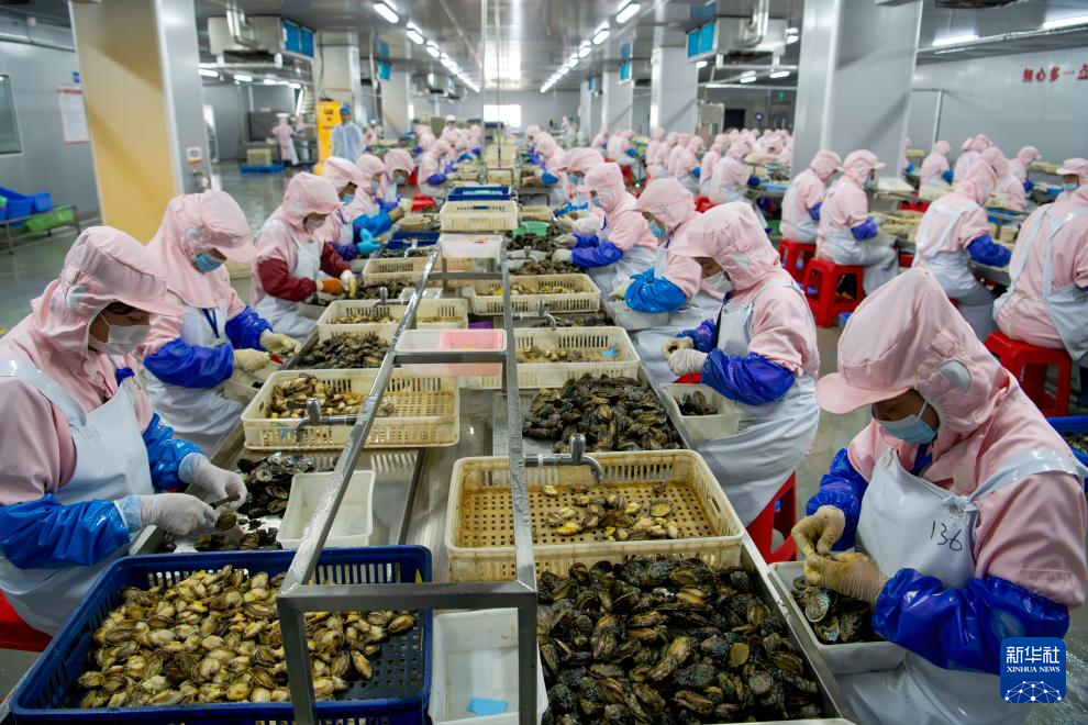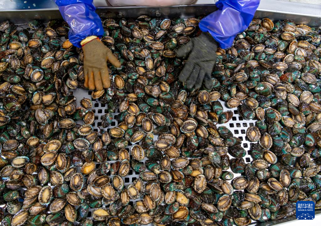 在位于莆田市涵江区的福建省新膳海洋食品有限公司生产车间里,工人们在处理加工鲍鱼。该公司年加工鲍鱼超过3亿只(5月16日摄)。新华社记者 魏培全 摄