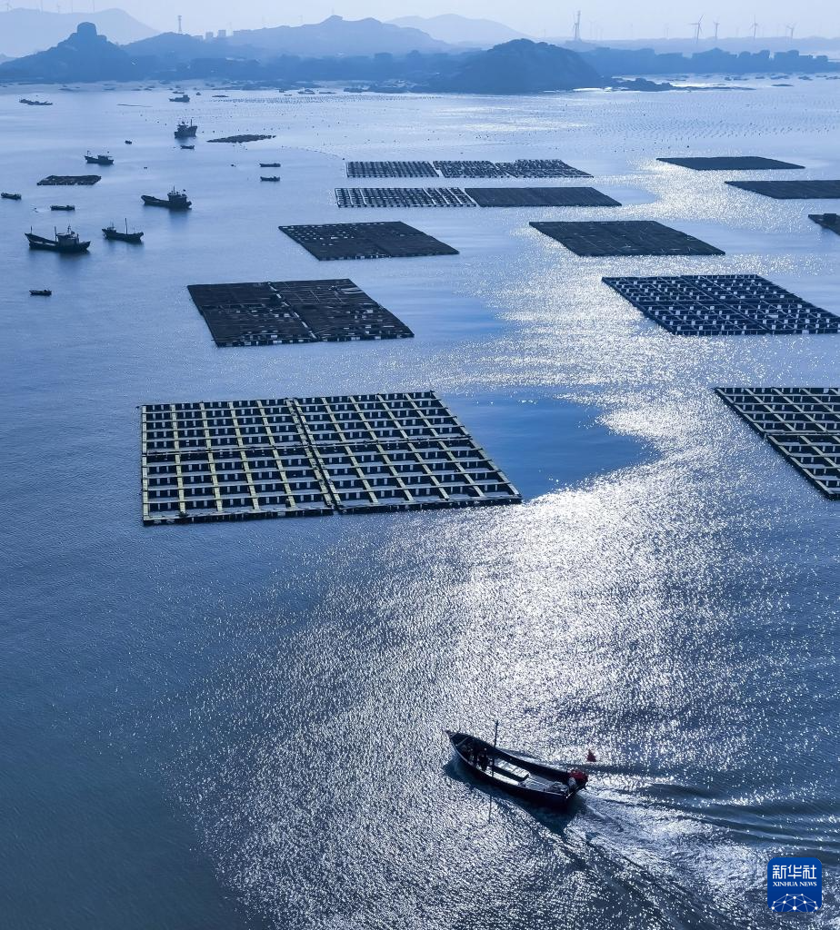 这是莆田市南日岛海域海上田园综合体全景。该综合体有序科学发展近海生态、立体循环养殖(无人机照片,2月27日摄)。新华社记者 魏培全 摄