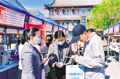5月17日,呼和浩特市玉泉区大召广场招聘会现场热闹非凡。当日,由呼和浩特市玉泉区委、区政府主办的“万象新程·职等你来”——玉泉区2025年·万象城专场招聘会吸引了诸多求职者前来参加。本场招聘会上,300多家企业为求职者提供7100多个就业岗位,满足不同求职者的多元化需求。内蒙古日报记者 潘佳慧 摄