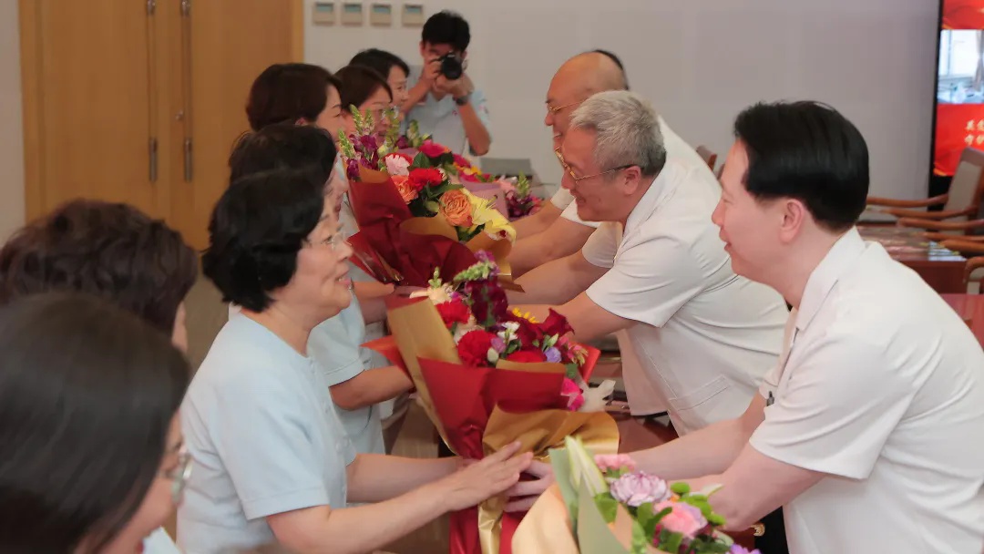 医院领导班子成员深入临床一线,为坚守岗位的护理工作者送上节日的鲜花与祝福。在温馨而庄重的氛围中,院领导为护龄满30年的资深护士颁发纪念奖牌,表彰她们数十年如一日的坚守与奉献。