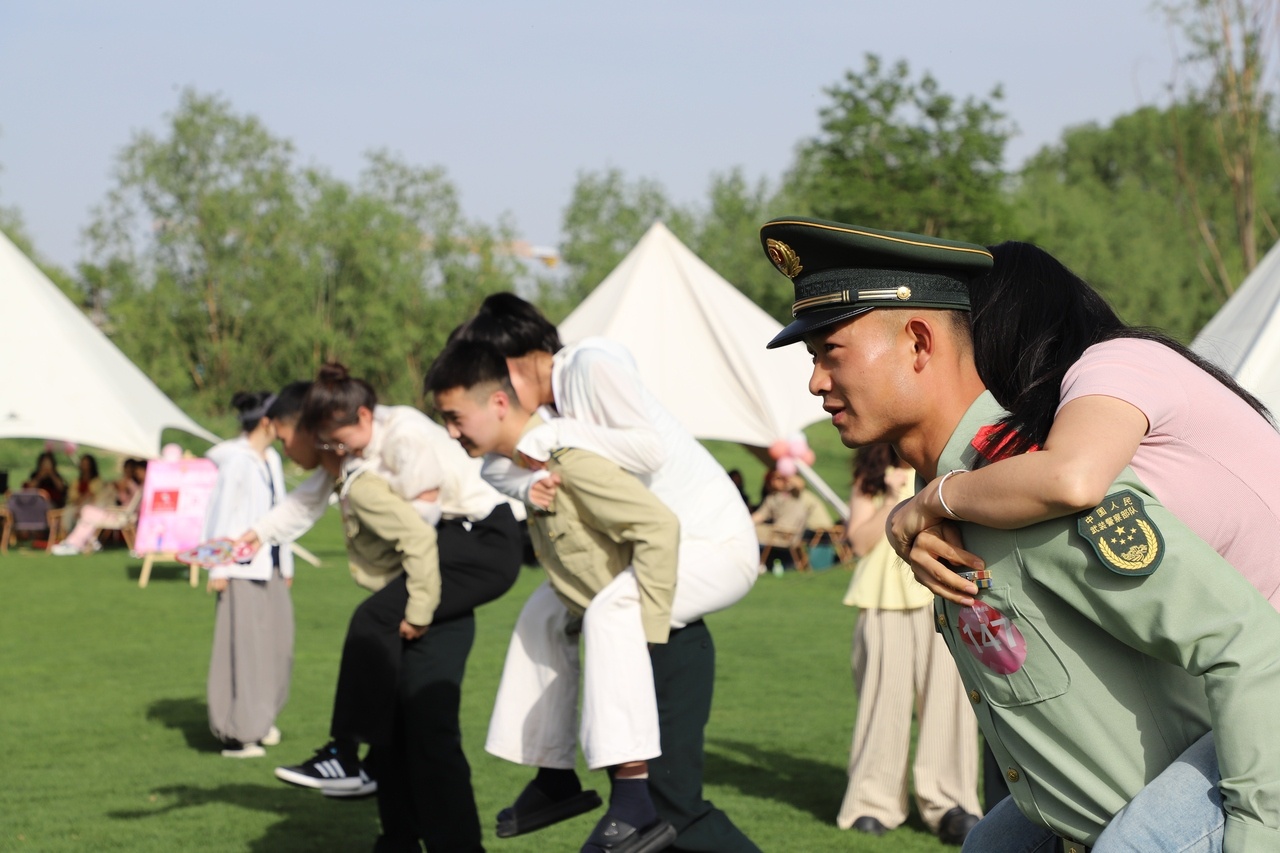 活动现场,天朗气清,绿意盈盈,拱门装饰点缀其间,营造出温馨浪漫的氛围。来自金凤区企事业单位的200余名单身青年在创意打卡区写下名字,开启了一段寻爱之旅。破冰游戏“一圈到底”让职工们迅速打破了彼此间的隔阂,欢声笑语此起彼伏;桃花朵朵开、叠报纸等互动游戏通过默契考验与互助合作,快速拉近了职工之间的距离,让他们在轻松自然的氛围中从认识到熟悉,在相互交流中寻找缘分、缔结友谊。