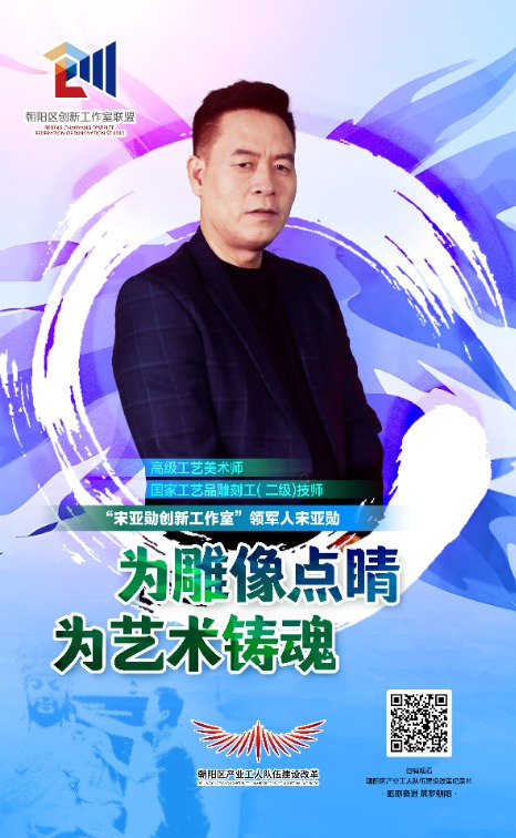 【领军人】宋亚勋,中国工艺美术协会会员、国家工艺品雕刻工(二级)、高级环境艺术师、河北省工艺美术大师、持证雕塑家、曲阳县工艺美术学会会长。擅长传统佛像、人物、园林雕塑的设计与创作,尤其擅长园林景观中大型水法制作,在挖掘保护并传承民间工艺美术方面贡献突出。他先后获北京市政府“享受政府特殊津贴技师”、北京市朝阳区制造业工会“2016年度岗位能手”、北京市朝阳区高新技术产业工会“2017、2018、2019、2020年度岗位能手”称号。