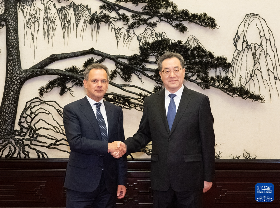 5月22日,中共中央政治局常委、国务院副总理丁薛祥在北京会见荷兰外交大臣费尔德坎普。新华社记者 申宏 摄