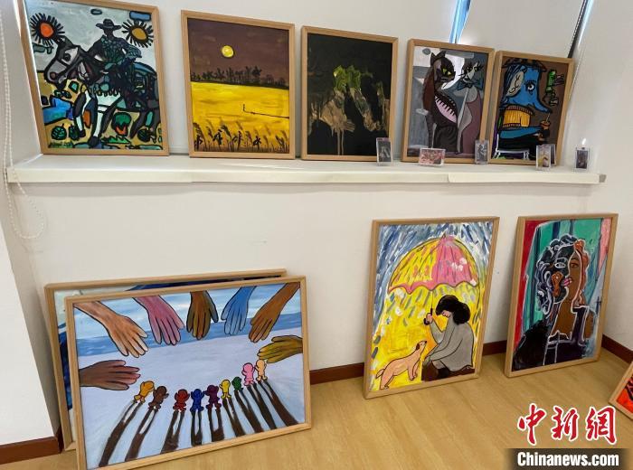 这些孤独症青年创作的17幅画作入选热播剧《猎罪图鉴2》官方收藏卡公益联名款。中新网记者 郑莹莹 摄