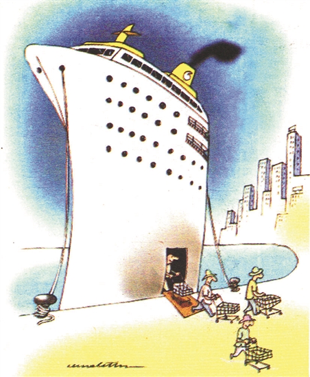 客轮停靠稳当,旅行者推着购物小车抢滩登陆。这里不仅是历史悠久的景点,更是购物的天堂,吃、穿、用、玩的一应俱全。