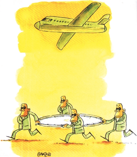 空难常有发生,如何保障上司的安全?尽职的保安员想出“高招”,他们抬着防摔垫紧跟即将降落飞机的下方,一路狂奔而来……