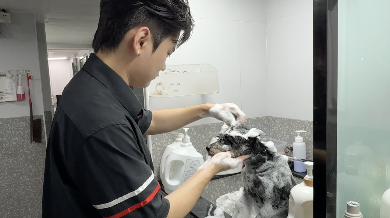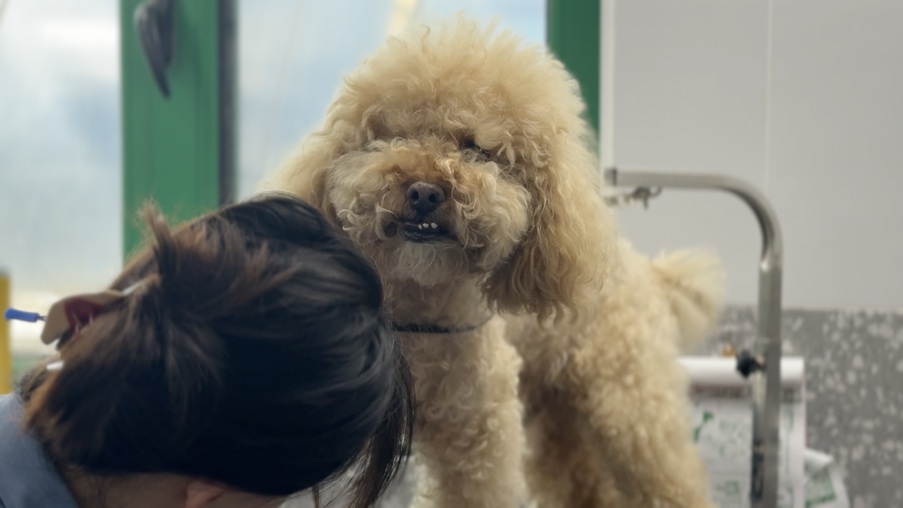 “在工作中,我们会遇到各种性格的狗狗,有的活泼,有的腼腆,也有的容易紧张,这就需要刚接触它们的时候,要先安抚它们的情绪,让它们熟悉美容师。也有同事遇到过情绪特别激动的狗狗,会把美容师抓伤、咬伤。不过我们也都有经验了,也会做好防护措施。”张波说。
