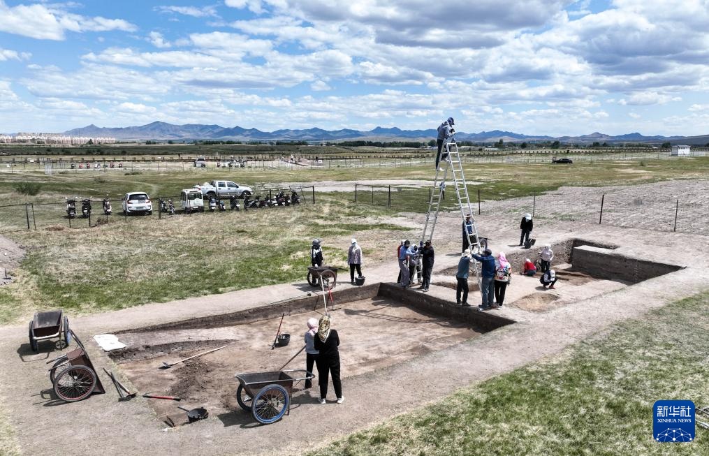 5月23日,考古人员在辽上京遗址进行发掘(无人机照片)。新华社记者 彭源 摄