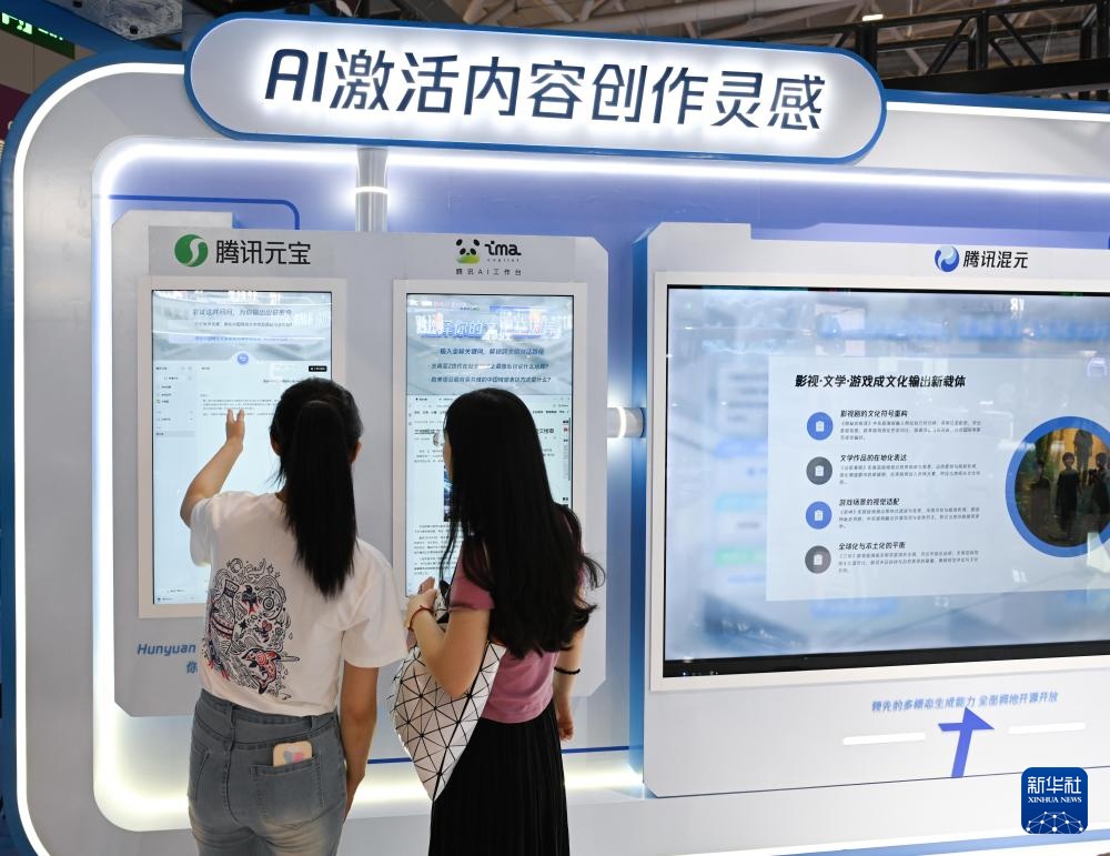 5月22日,观众在文博会腾讯展台了解AI产品。新华社记者 肖恩楠 摄