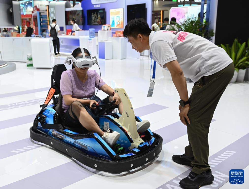 5月22日,观众在文博会天津展区体验卡丁车。新华社记者 肖恩楠 摄