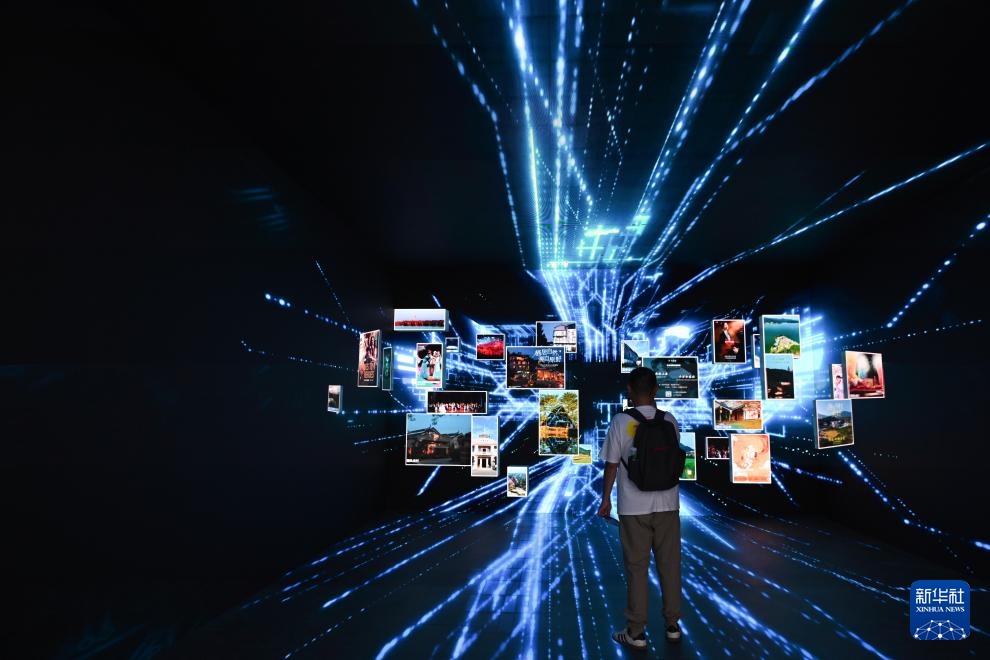 5月22日,观众在文博会体验五面屏沉浸式交互项目。新华社记者 肖恩楠 摄