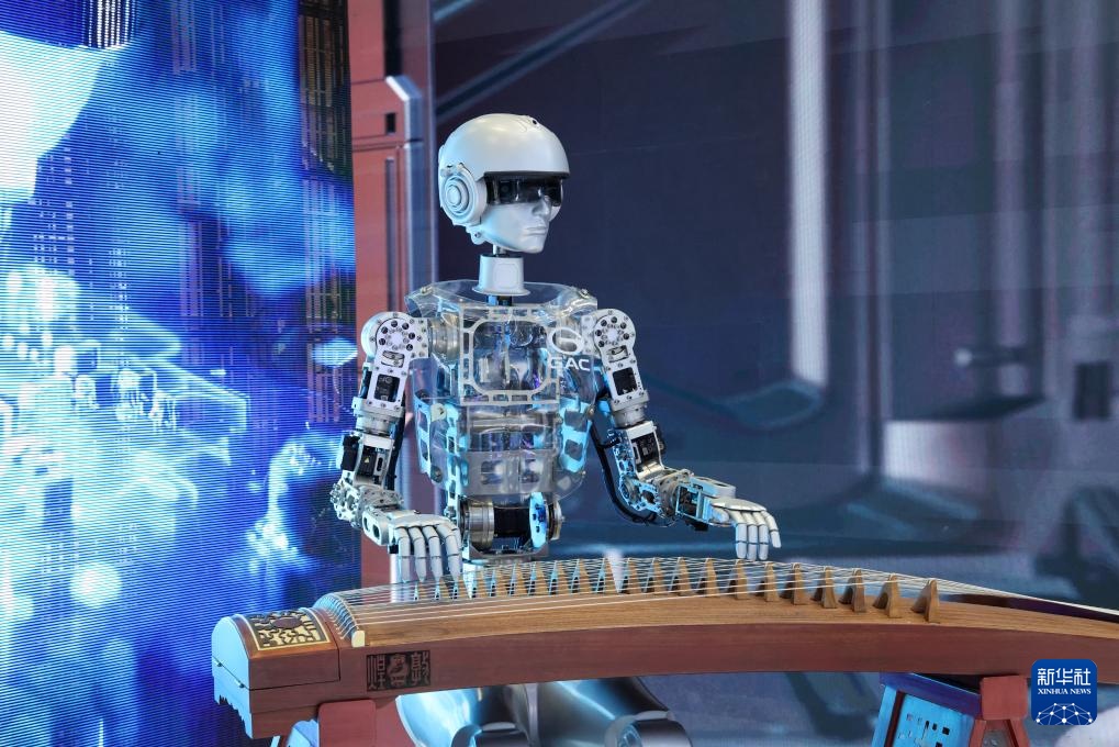 5月23日,在文博会现场,机器人表演弹古筝。新华社记者 梁旭 摄