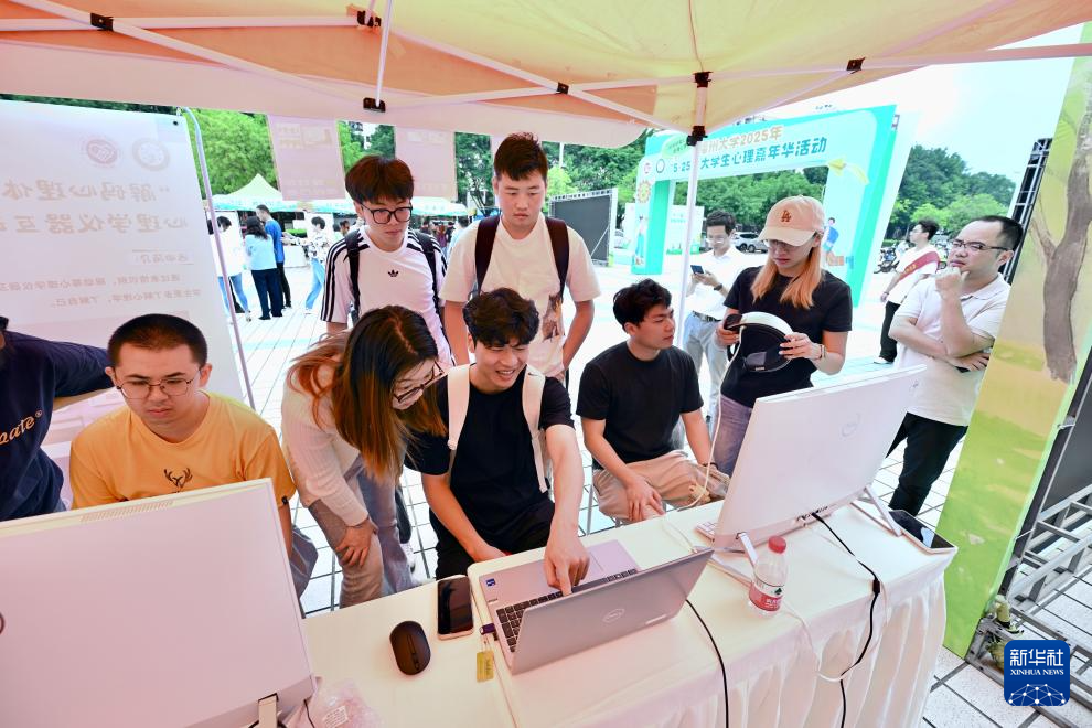 5月25日,在福州大学心理嘉年华活动上,学生在参与心理学仪器测试及互动体验。新华社记者 姜克红 摄