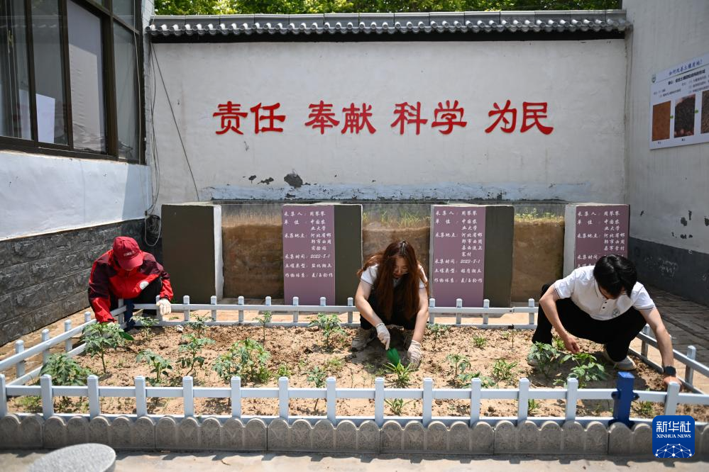 5月26日,河北省曲周县傅庄科技小院的学生在小院的试验田里工作。新华社记者 牟宇 摄