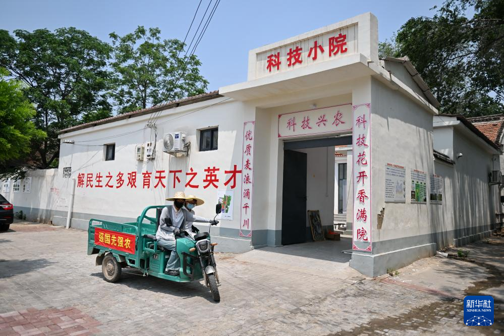 5月26日,河北省曲周县刘庄科技小院的学生驾驶三轮车去试验田工作。新华社记者 牟宇 摄