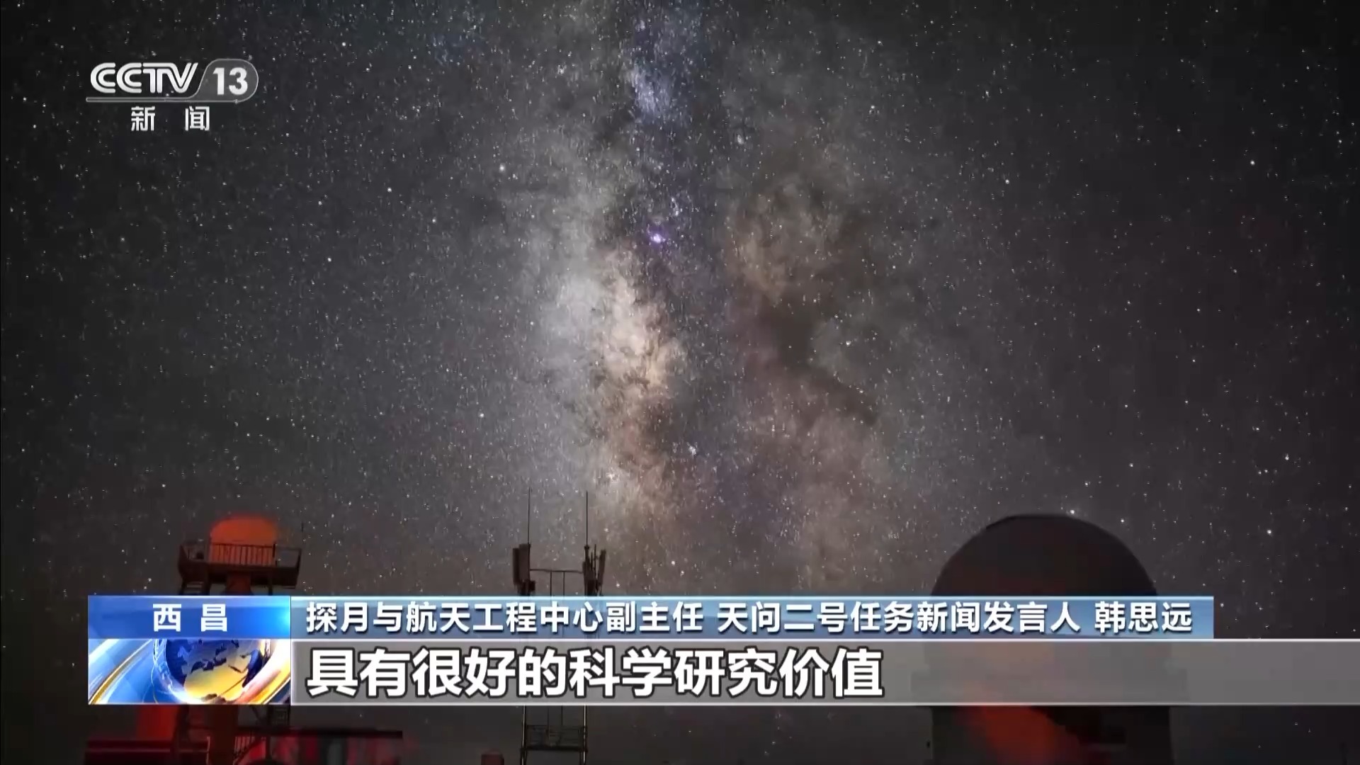 探月与航天工程中心副主任 天问二号任务新闻发言人 韩思远:它很有可能蕴含着太阳系诞生之初的一些原始信息,这对我们研究太阳系早期一些物质组成,包括形成过程以及演化历史等方面具有很好的科学研究价值。