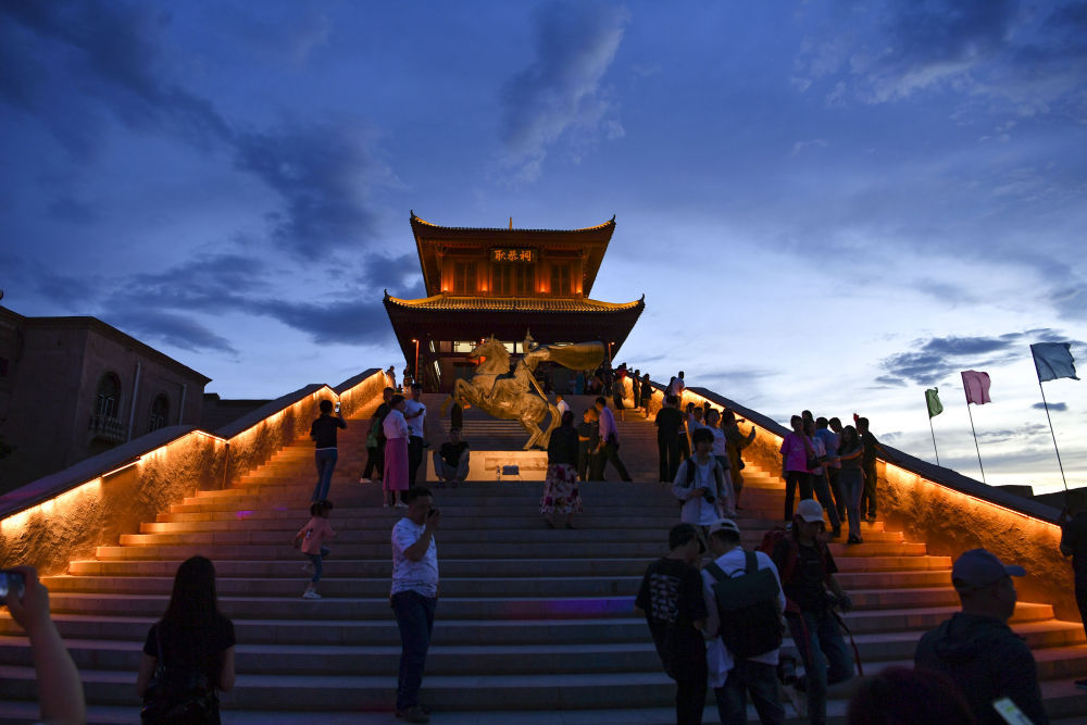 游客在新疆喀什古城景区耿恭祠游玩(2023年6月14日摄)。新华社记者 胡虎虎 摄