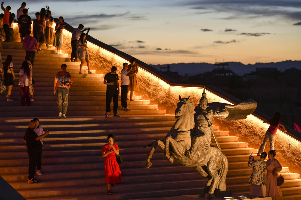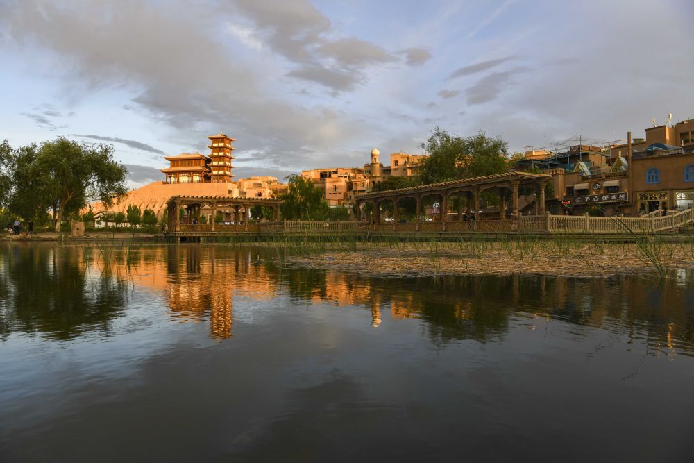 人们在新疆喀什市盘橐城景区内游玩(2023年6月14日摄)。新华社记者 胡虎虎 摄