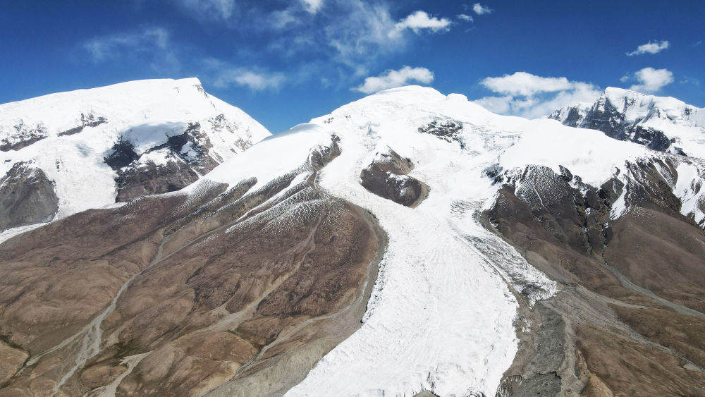 这是在新疆塔什库尔干塔吉克自治县慕士塔格冰川公园拍摄的冰川景观(2023年9月6日摄,无人机照片)。新华社记者 金皓原 摄