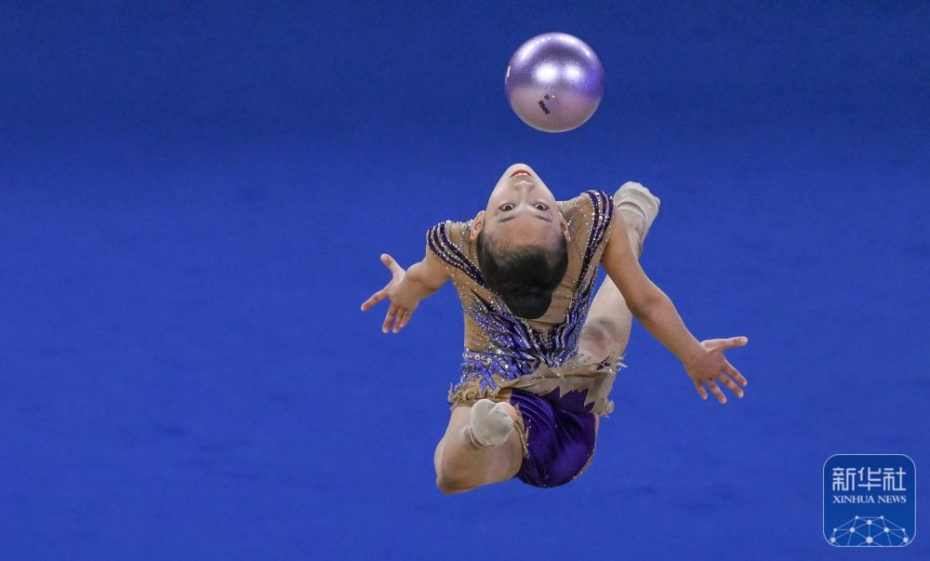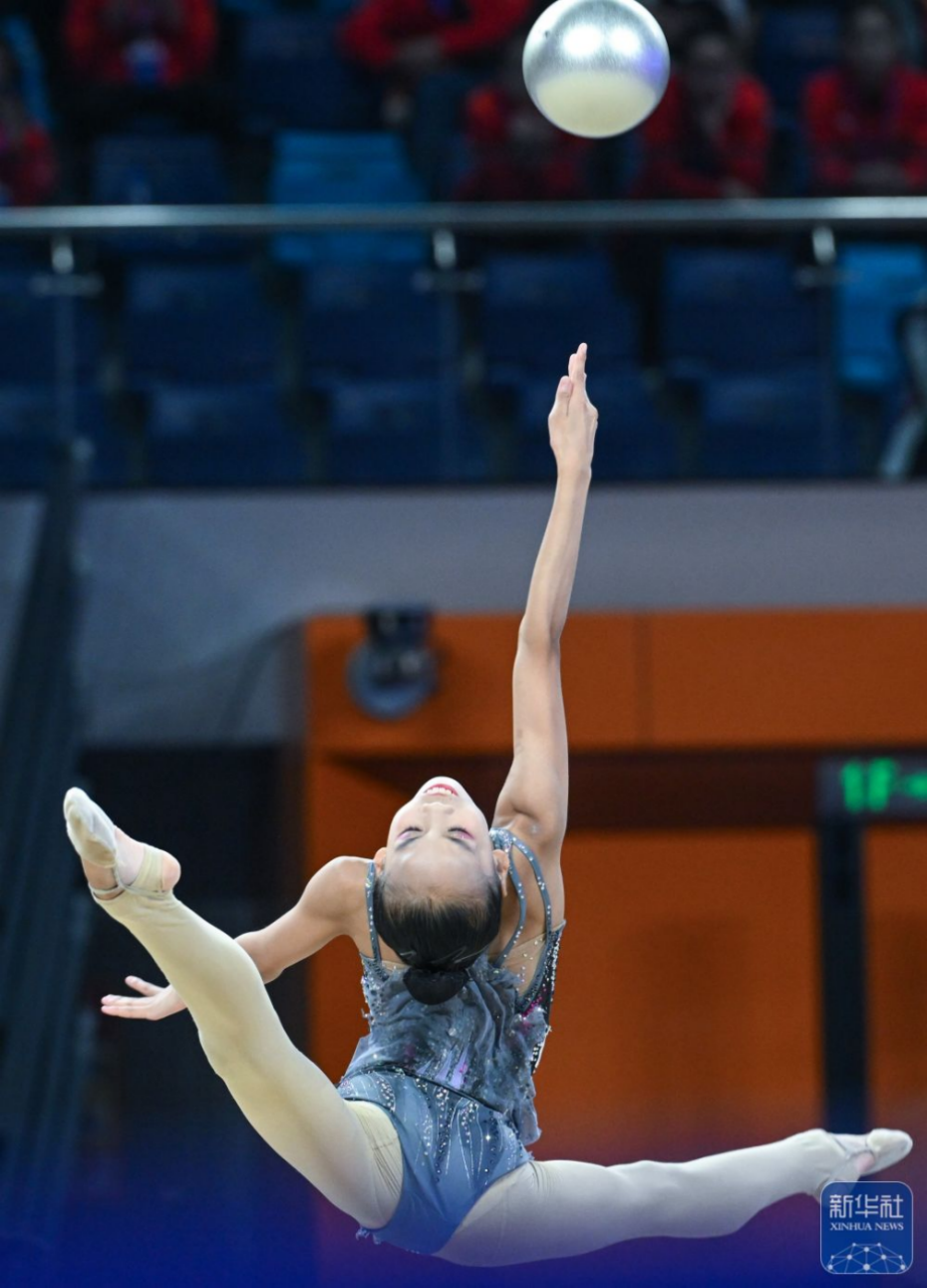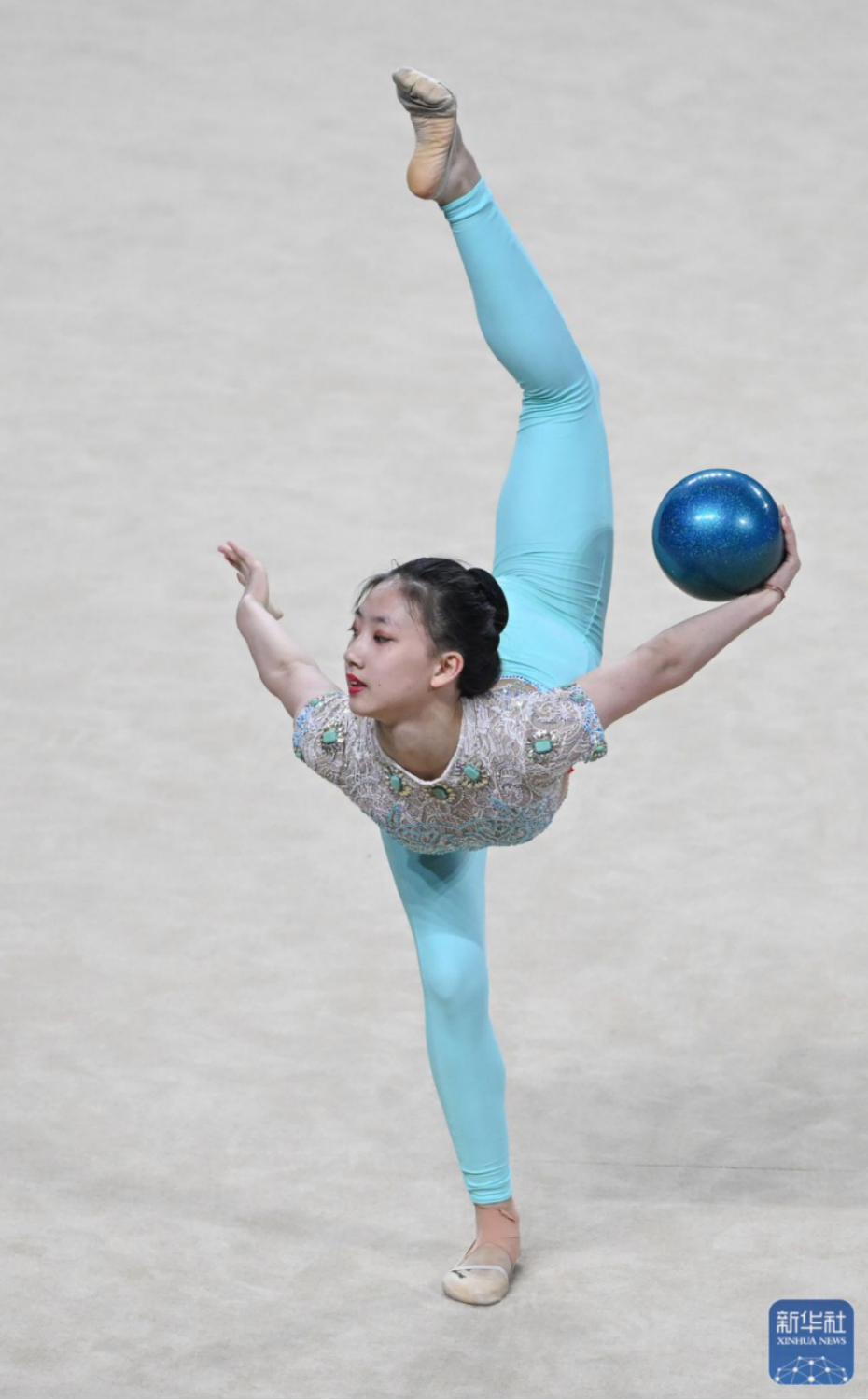 辽宁金满星队选手谢紫萱在青年个人球操资格赛中。新华社记者 陈诚 摄