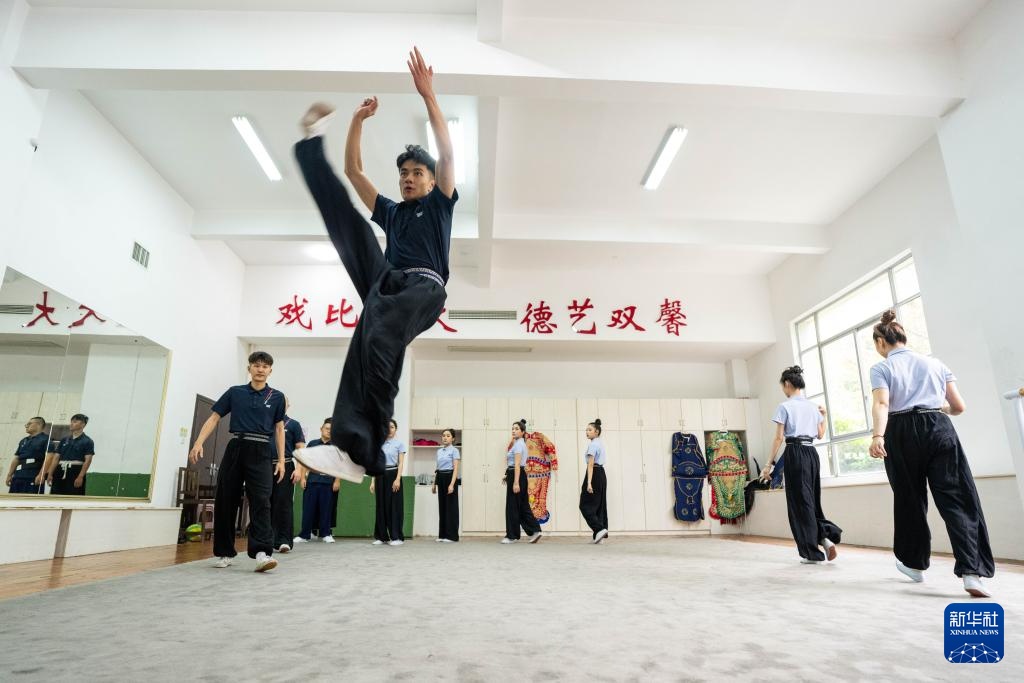 6月4日,在湖南省昆剧团练功房,青年演员廖茂鑫(前)在练习基本功。新华社记者 陈思汗 摄