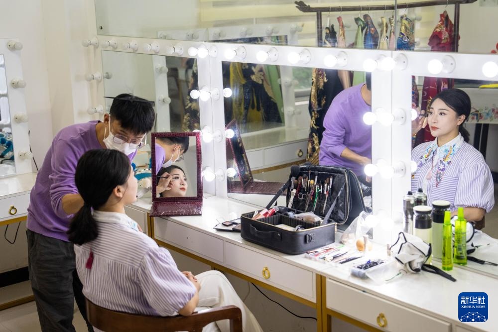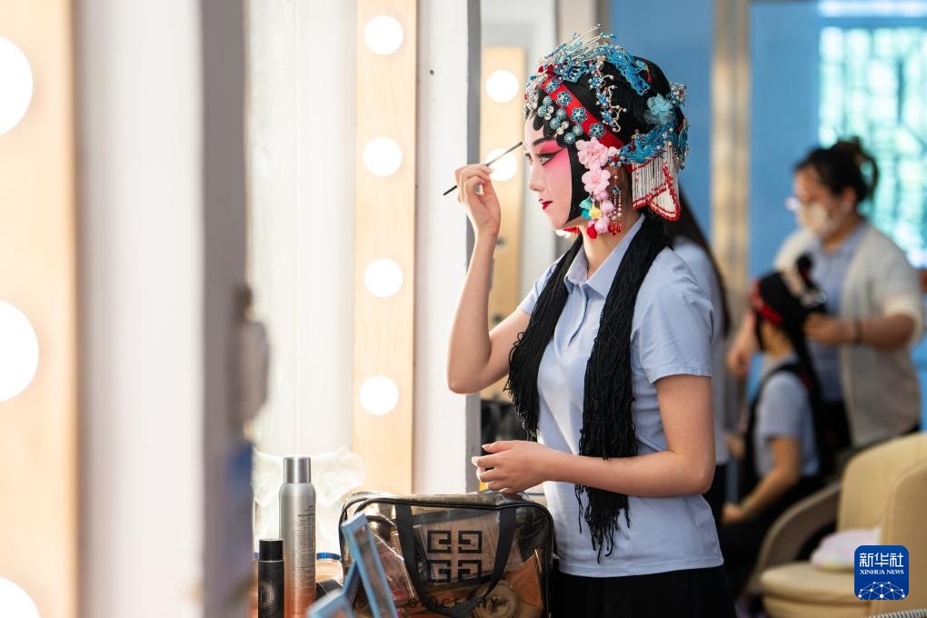6月4日,在湖南省昆剧团化妆间,青年演员雷丽丽在演出前化妆。新华社记者 陈思汗 摄