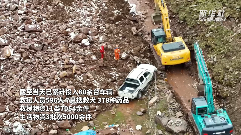 事件发生后,各方救援力量赶赴现场,开展救援工作。6月5日上午6时,搜救挖掘继续开展,截至5日18时已累计投入80余台车辆、596人、7只搜救犬、378种药品、救援物资11类7054余件、生活物资3批次5000余件。清理堆积体约5000方,挖掘出2辆汽车,搜寻到3名遇难者遗体,未搜寻到7名失联人员。
