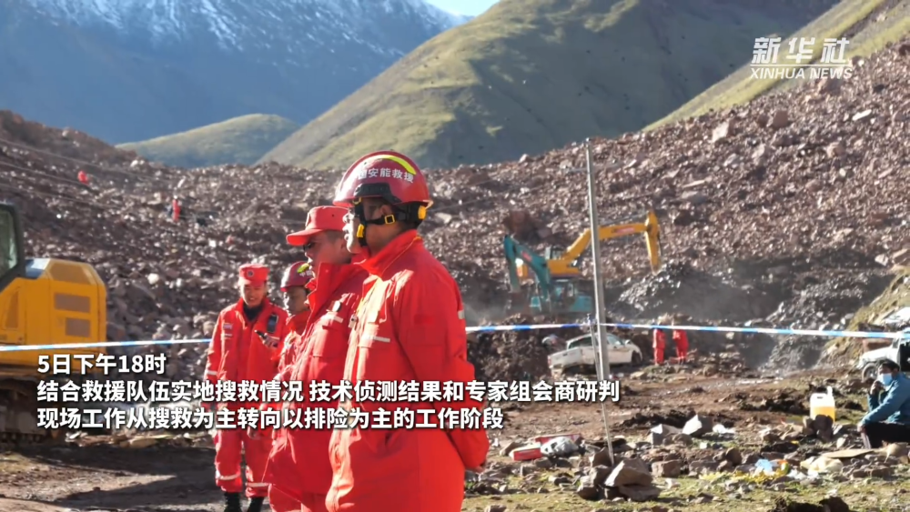 5日18时,结合救援队伍实地搜救情况、技术侦测结果和专家组会商研判,现场工作从搜救为主转向以排险为主的工作阶段。