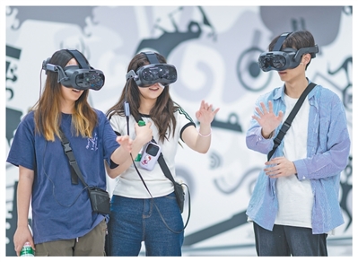湖北省博物馆,游客在体验VR数字产品。新华社记者 伍志尊摄