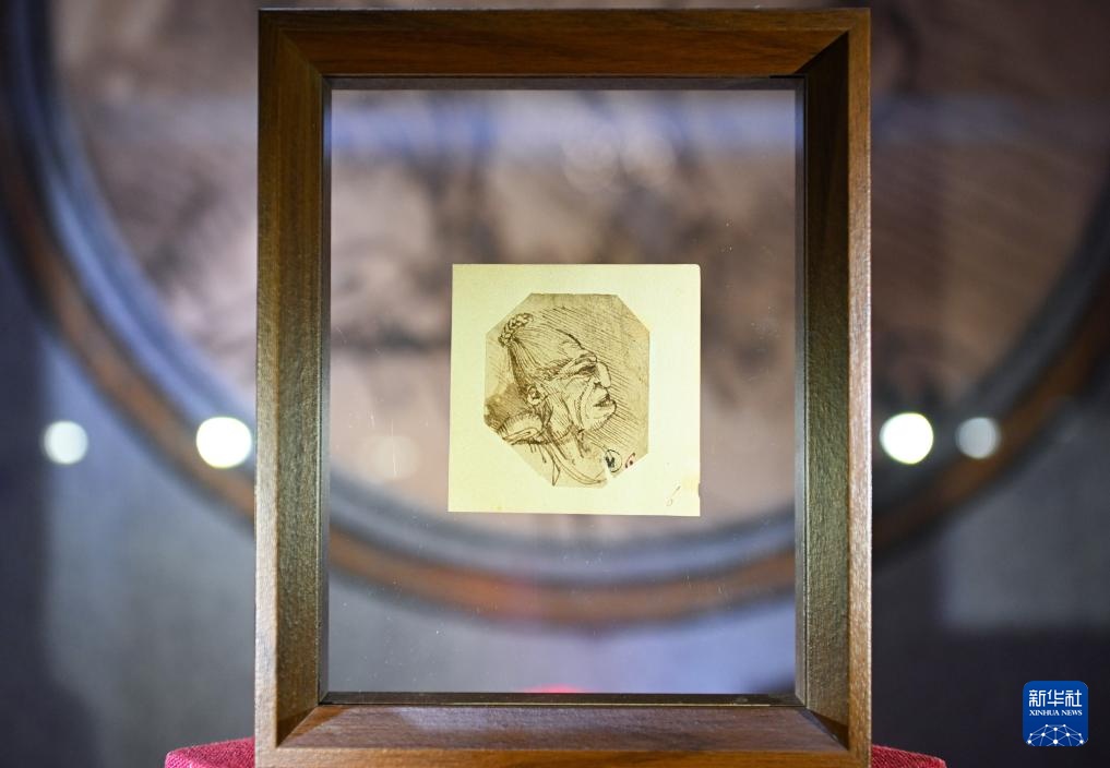 这是6月5日拍摄的达·芬奇手稿残片《老妇人的脸》。新华社记者 陈钟昊 摄