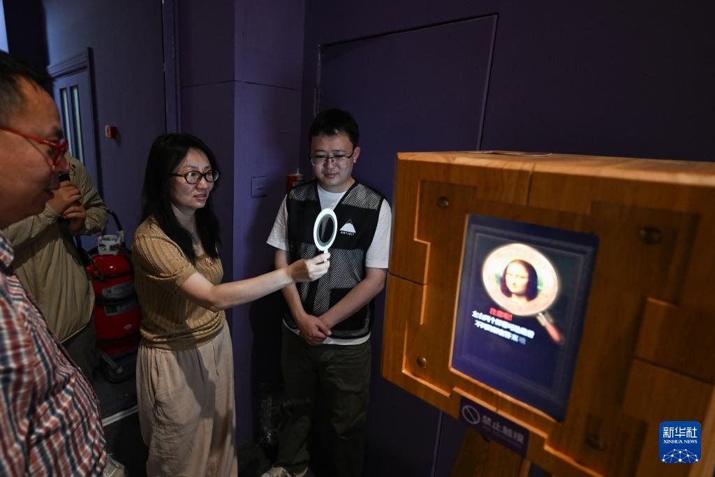 6月5日,参观者在展览上透过一片偏光镜观看与展览内容相关的科普影像。新华社记者 陈钟昊 摄