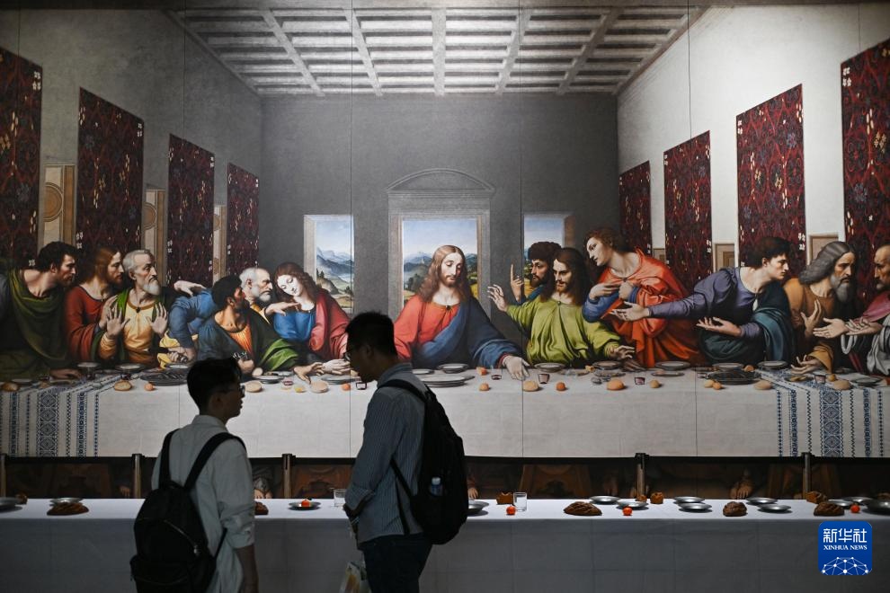 这是6月5日拍摄的展览上展出的数字复原的《最后的晚餐》。新华社记者 陈钟昊 摄