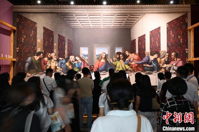 展览创新技术应用,《蒙娜丽莎》画中的面部细节借助数字修复进行了还原;《最后的晚餐》大型场景中,重现餐桌上的食物与道具;在《老妇人的脸》手稿残片的展示区域,人们可以翻开书本装置,了解达·芬奇的怪诞画特点,一窥画中人的内心世界。