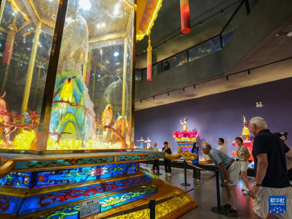 2025年6月5日,在四川省自贡市中国彩灯博物馆,来自德国的游客在参观灯组。新华社记者 王曦 摄